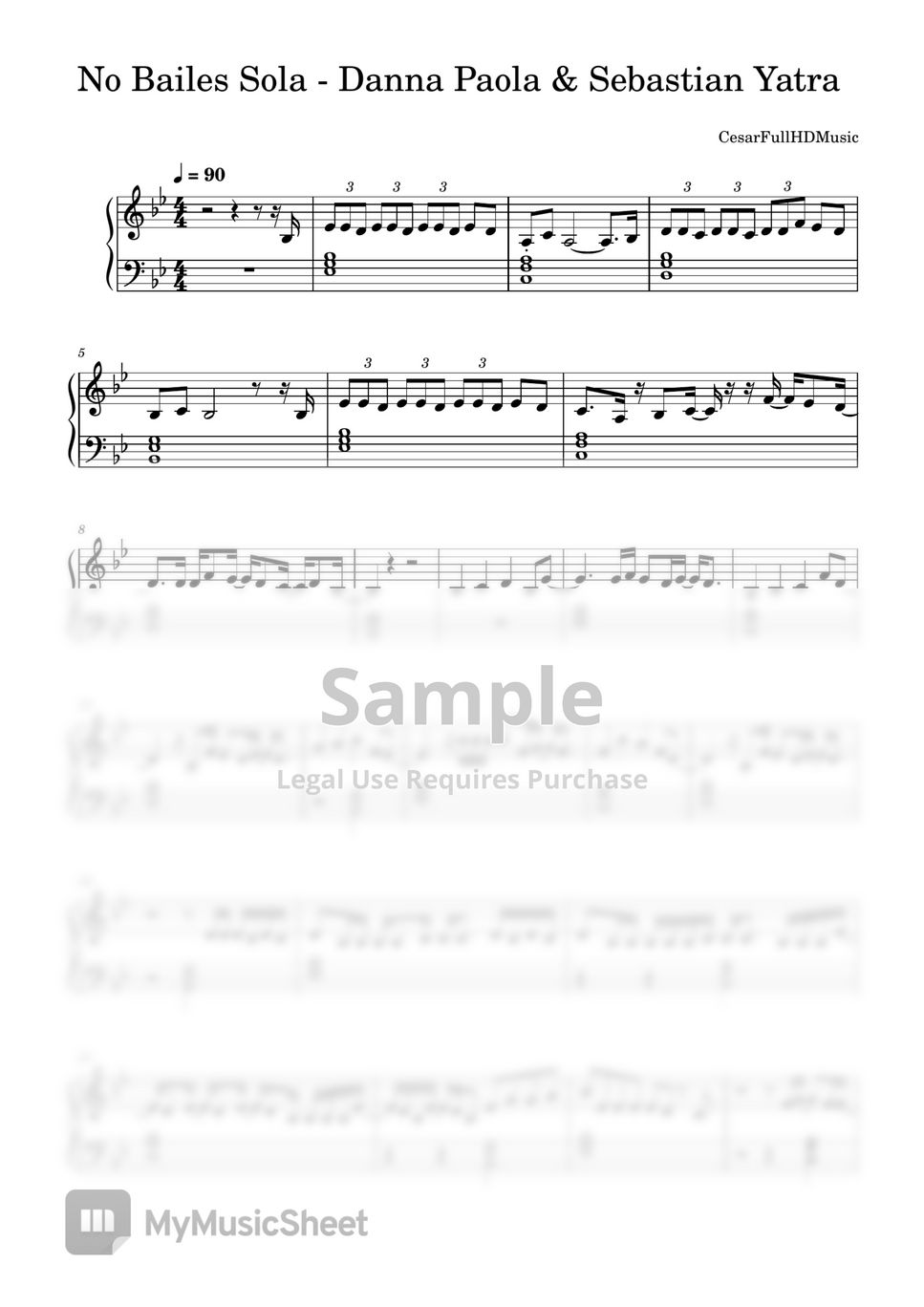 Partitura de No Bailes Sola - Danna Paola & Sebastian Yatra , si queréis tener el MIDI, contactad conmigo por insta cesarpaz98 o mediante correo cpazsomoza98@gmail.com . Tenéis todos los tutoriales disponibles en mi canal de YouTube : CesarFullHDMusic
