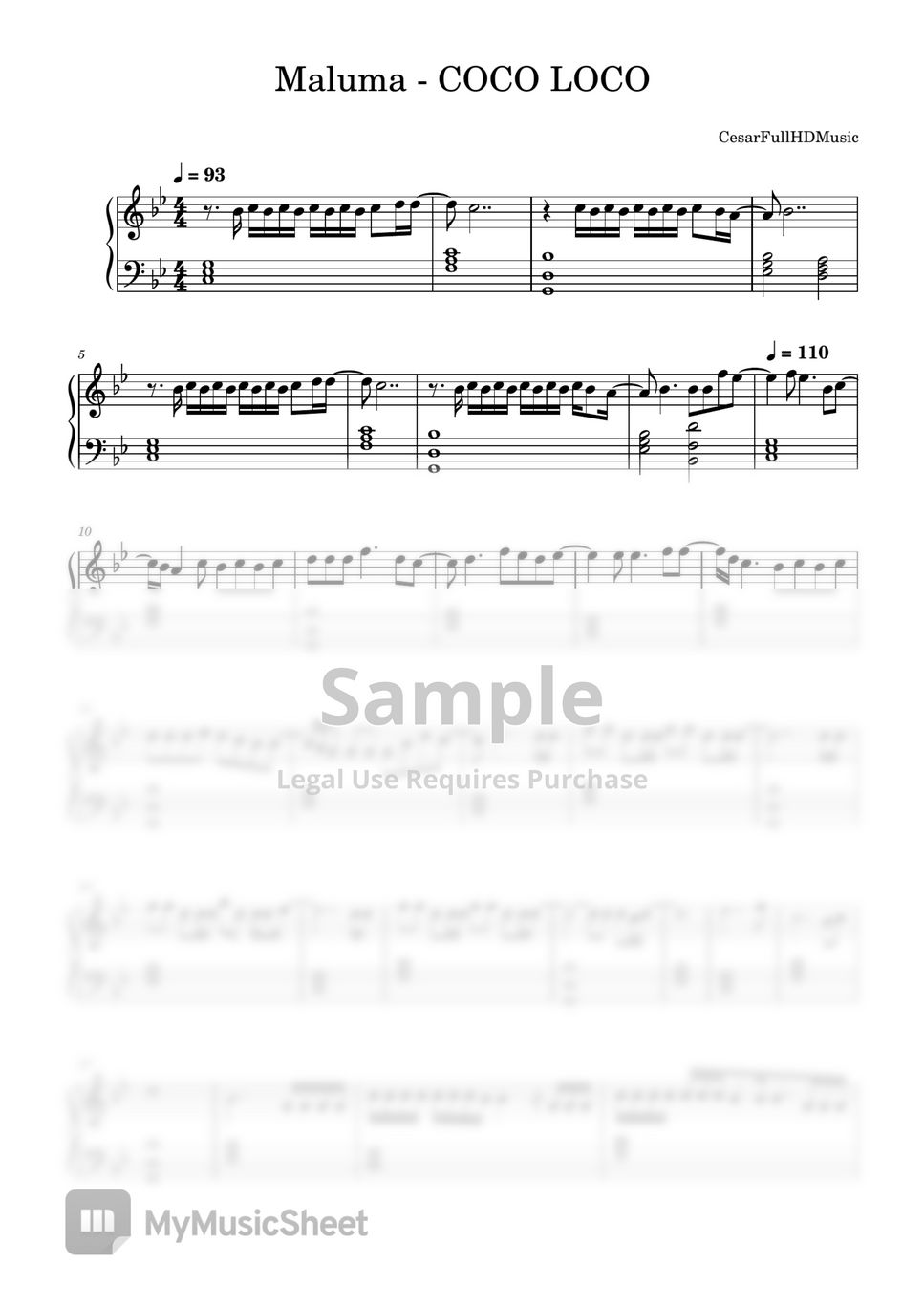 Partitura de Maluma - COCO LOCO si queréis tener el MIDI, contactad conmigo por insta cesarpaz98 o mediante correo cpazsomoza98@gmail.com . Tenéis todos los tutoriales disponibles en mi canal de YouTube : CesarFullHDMusic