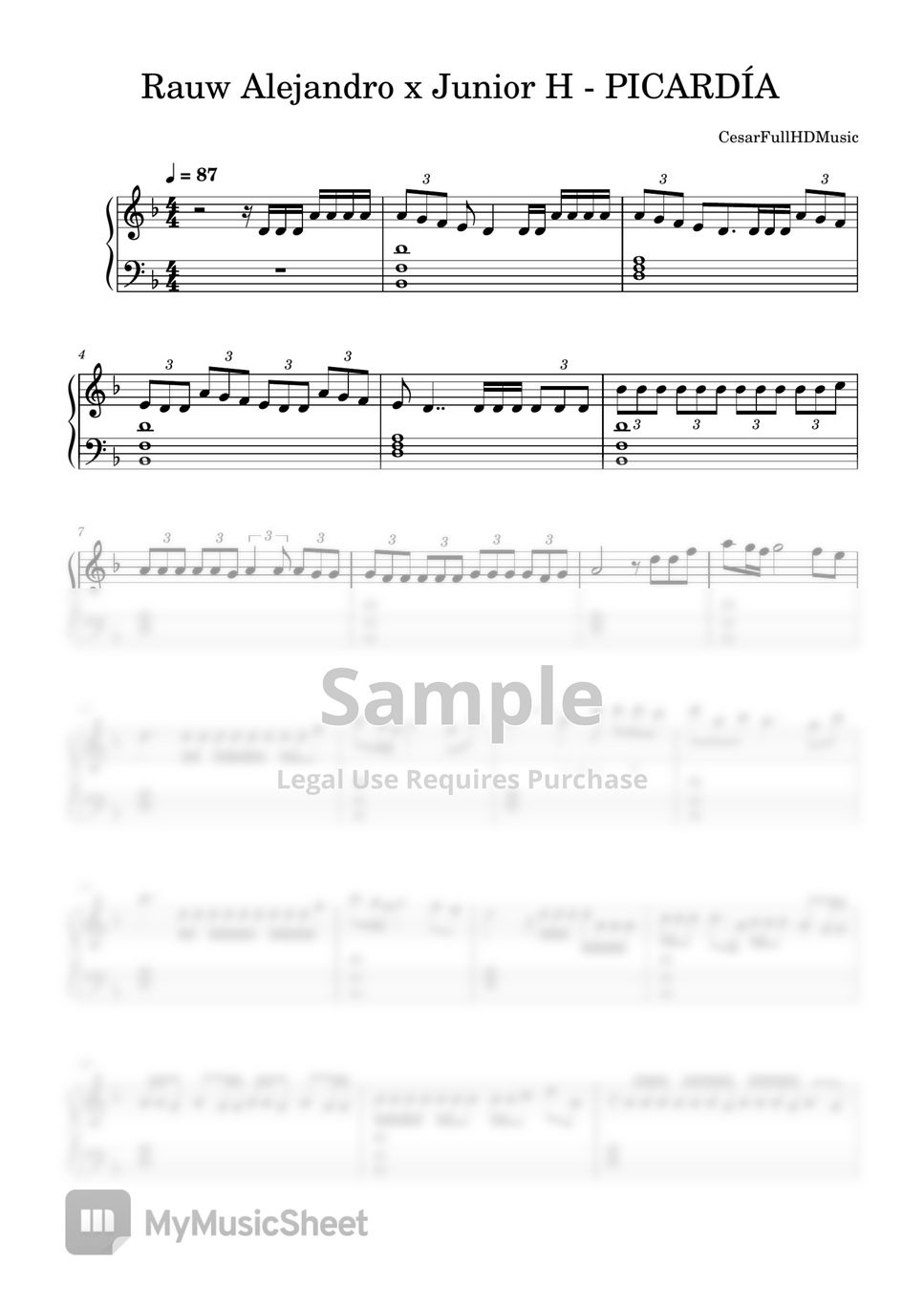 Partitura de Rauw Alejandro x Junior H - PICARDÍA, si queréis tener el MIDI, contactad conmigo por insta cesarpaz98 o mediante correo cpazsomoza98@gmail.com . Tenéis todos los tutoriales disponibles en mi canal de YouTube :CesarFullHDMusic