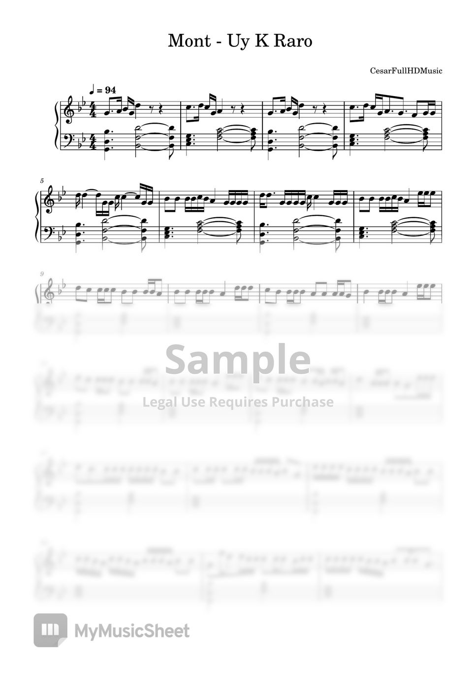 Partitura de Mont - Uy K Raro , si queréis tener el MIDI, contactad conmigo por insta cesarpaz98 o mediante correo cpazsomoza98@gmail.com . Tenéis todos los tutoriales disponibles en mi canal de YouTube : CesarFullHDMusic