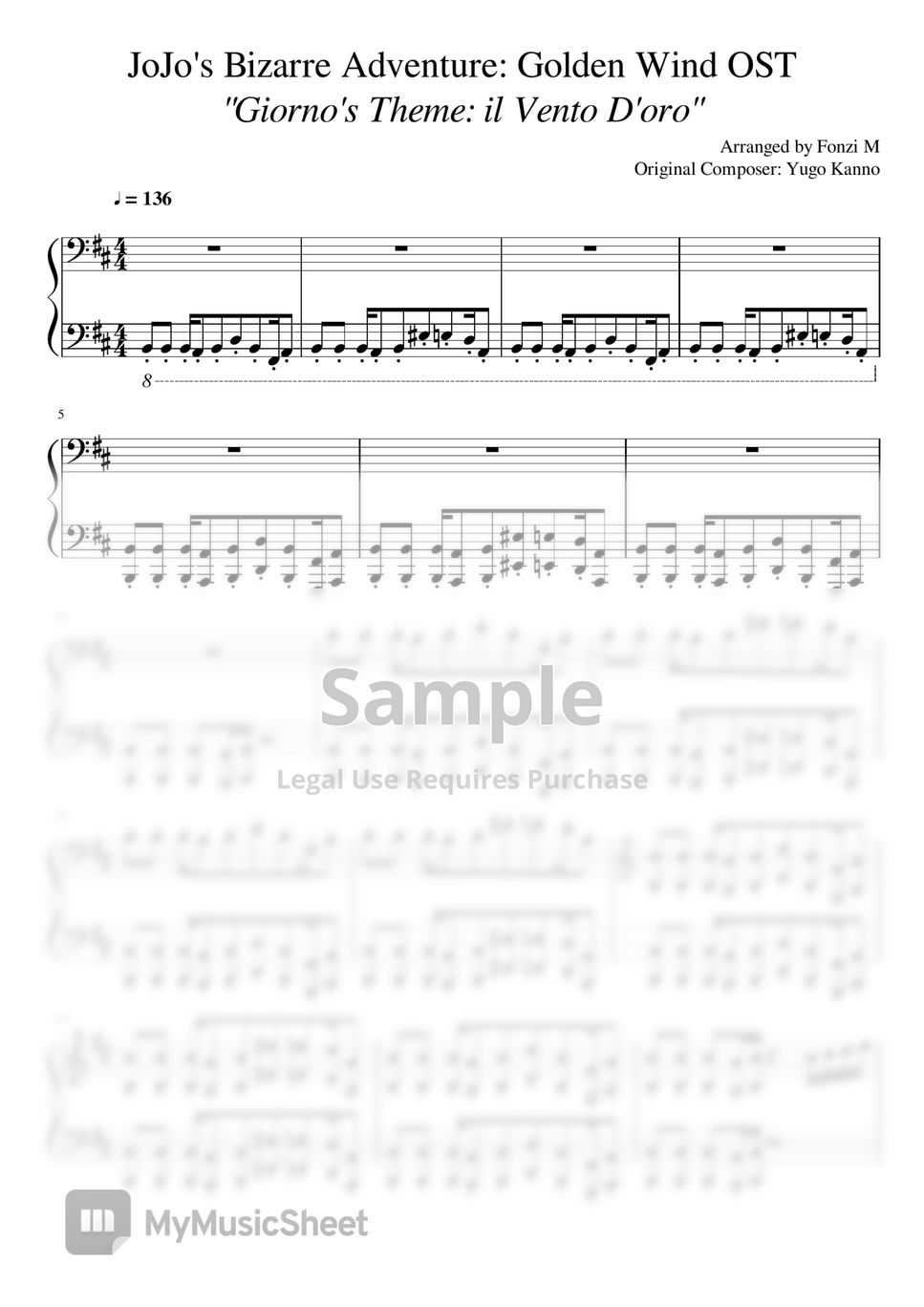 This is the Sheet Music PDF of Fonzi M's piano cover of Giorno's Theme.