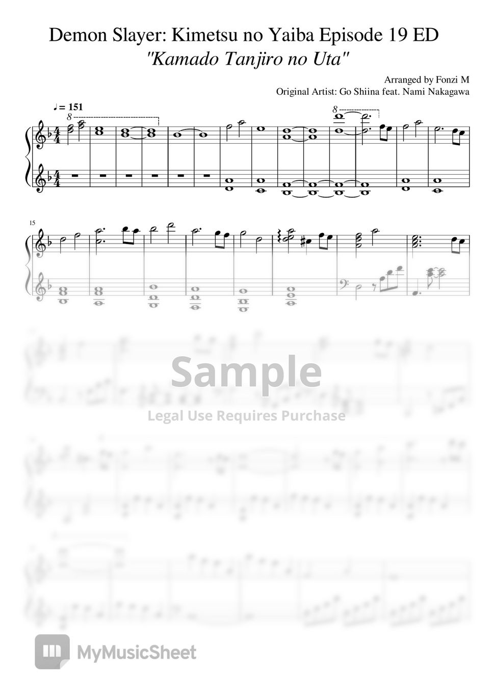 This is the Sheet Music PDF of Fonzi M's full piano cover of the Kimetsu no Yaiba Episode 19 ED - Kamado Tanjiro no Uta!