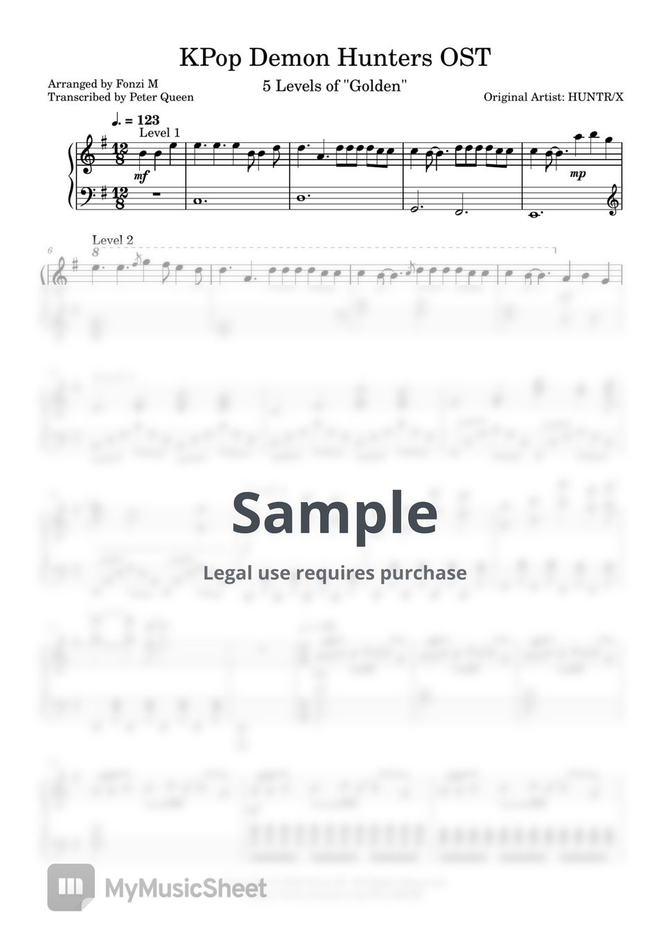 This is the Sheet Music PDF of Fonzi M's piano cover of Golden in 5 levels of difficulty!