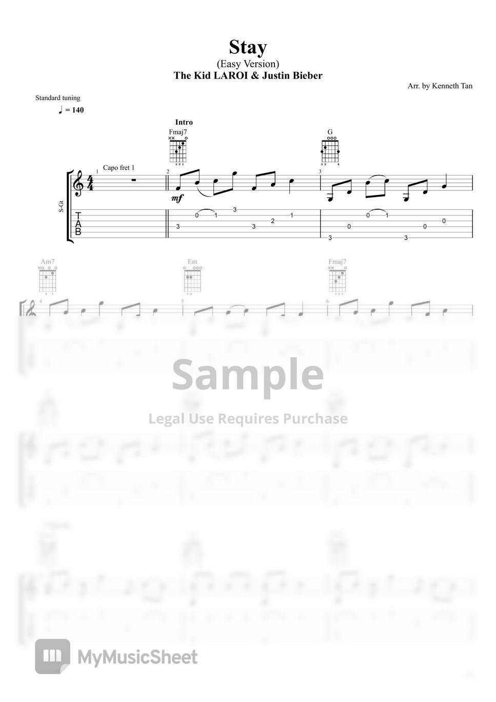 STAY (Easy Version) The Kid LAROI, Justin Bieber | Fingerstyle Guitar