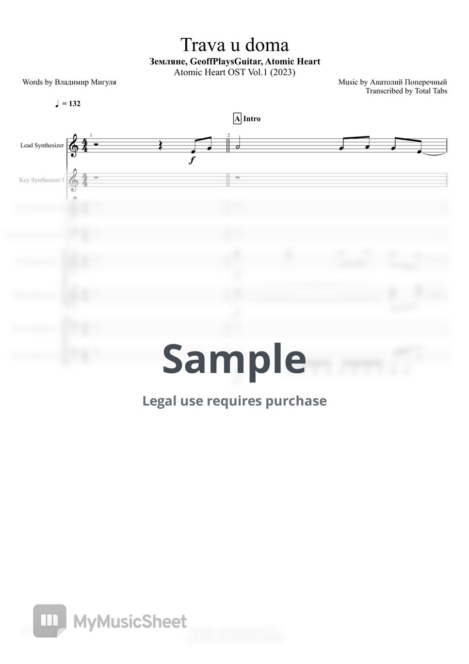 🎼 This is a synthesizers sheet music of the song Trava u doma ("Трава у дома") from Atomic Heart performed by Geoffplaysguitar. The original song was performed by Zemlyane ("Земляне").