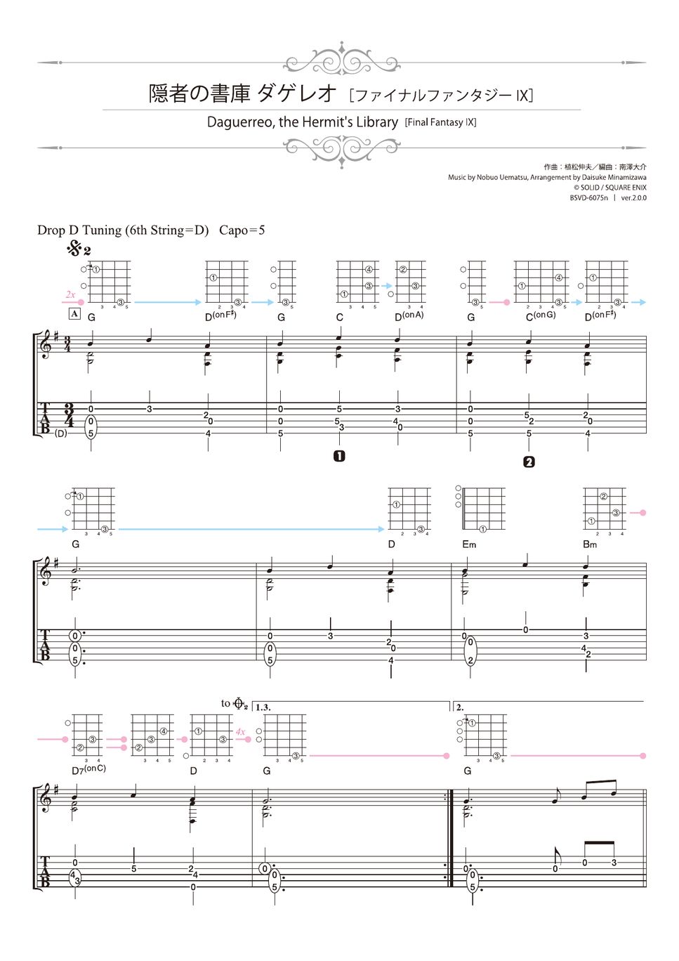 score (staff notation, TAB, diagram, reference finger line) : 3 pages