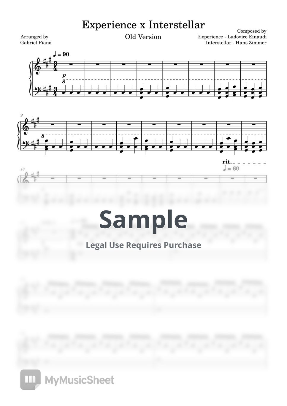 🎼 Discover the beauty of music with our exclusive sheet music for "Experience x Interstellar"! This remarkable piece, originally composed by the legendary Ludovico Einaudi & Hans Zimmer, has been expertly arranged by Gabriel Piano, offering a mesmerizing blend of movie_ost, classic, and instrumental genre.