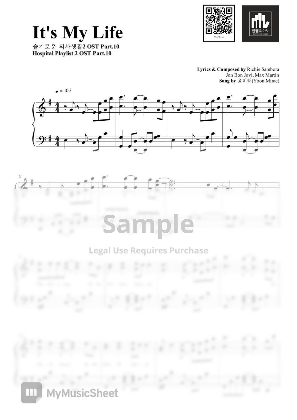 윤미래(Yoon Mirae) - It's My Life (슬기로운 의사생활 시즌2 OST) Hospital Playlist 2 OST PIANO COVER