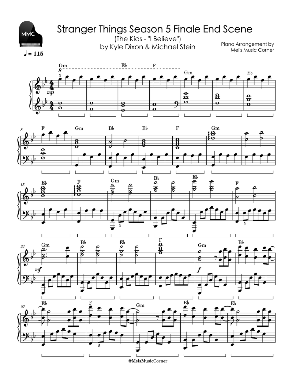 Stranger Things Season 5 Finale End Scene - The Kids (piano sheet music) Michael Stein & Kyle Dixon