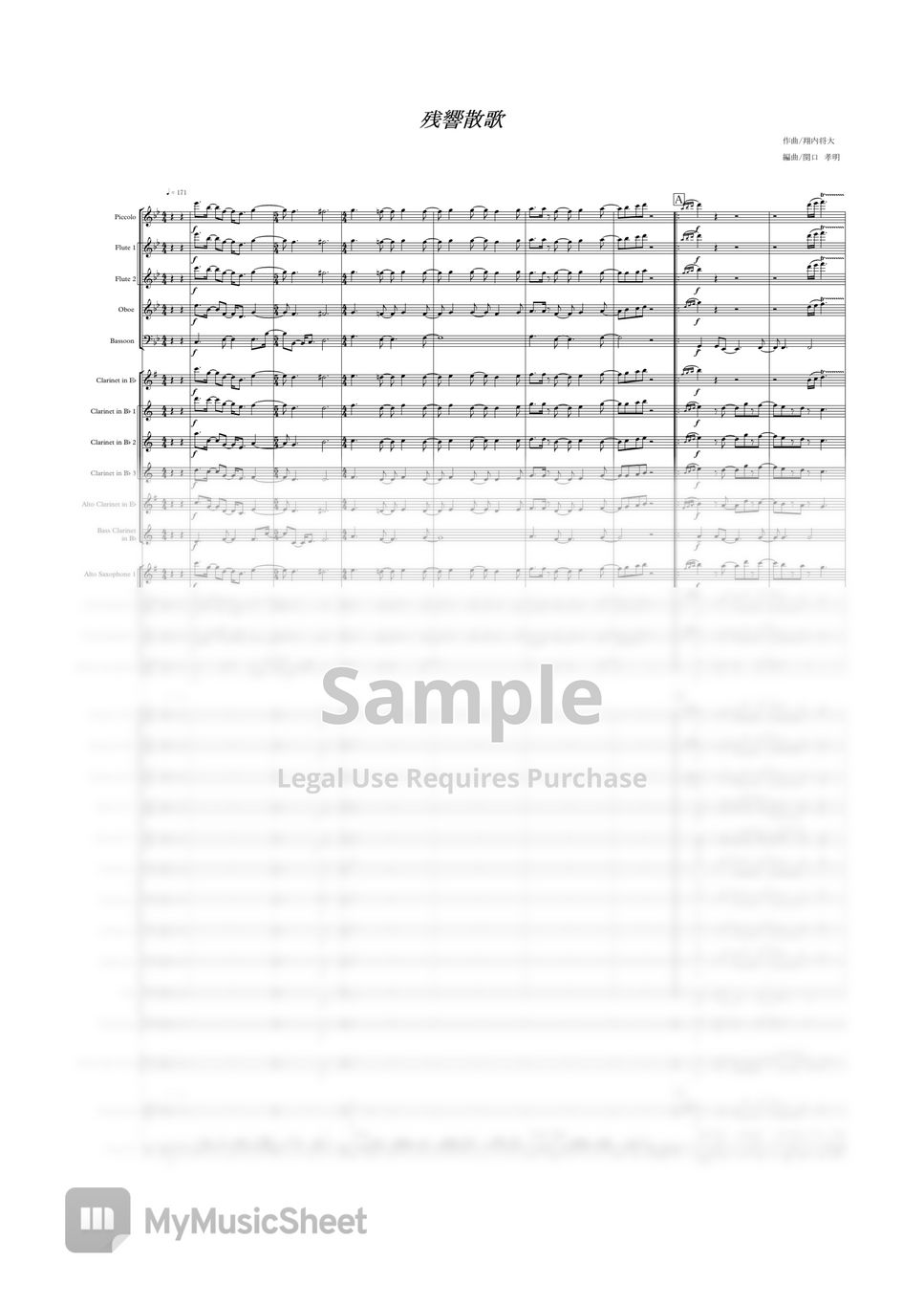 大人気アニメ「鬼滅の刃」の主題歌に抜擢されたAimer(エメ)が歌う「残響散歌(ざんきょうさんか)」を吹奏楽で。 解説…遊郭編のOP主題歌です。原曲は、ビッグバンドを用いた文字通りド派手な編成になっております。AのTrp1は音が高いですが、厳しければ、2nd、3rdと一緒に場所によって、1Octave下げても大丈夫です。全体的に裏拍とシンコペーションを大事にして下さい。華やかな演奏を楽しみにしております。