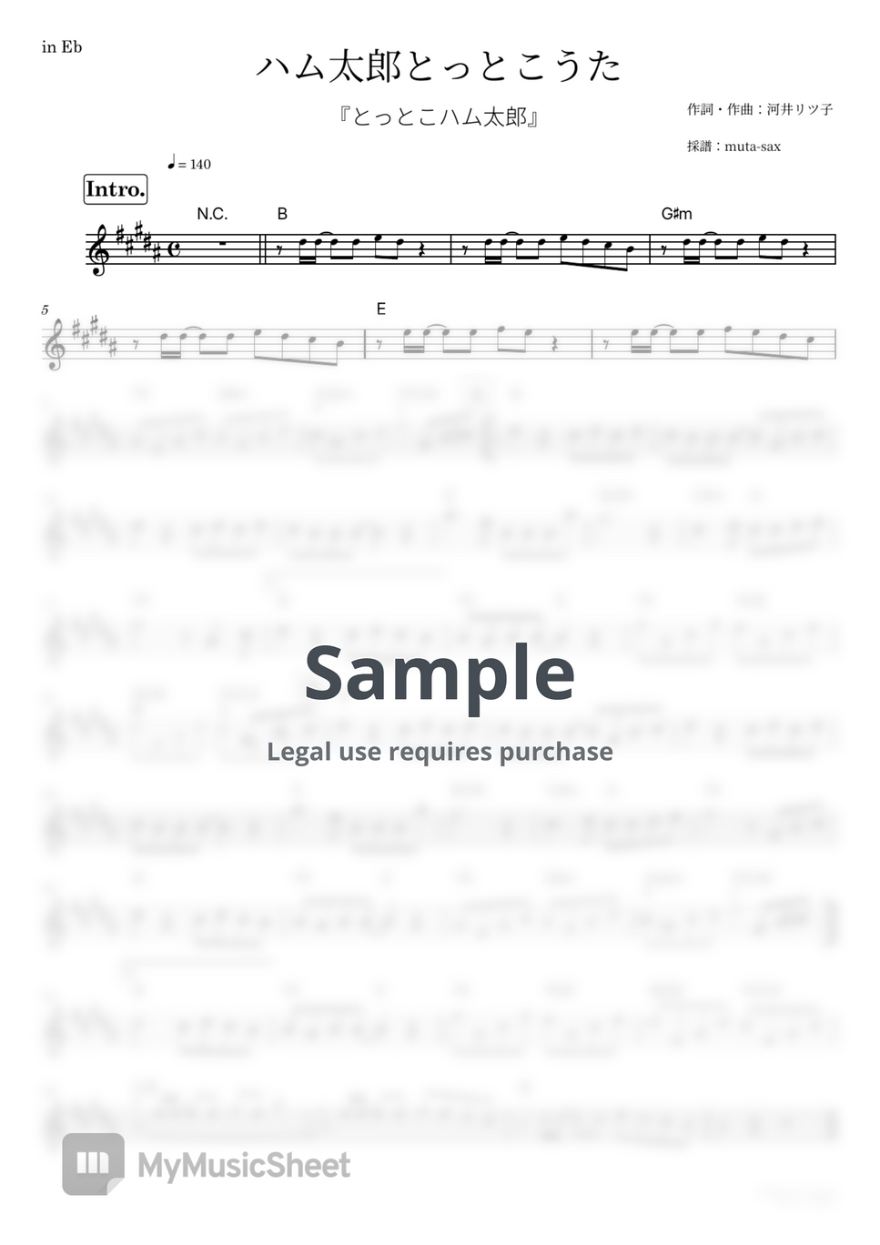 in Ebの譜面で原曲キー、フルサイズです。/ Full size sheet music in Eb, original key.