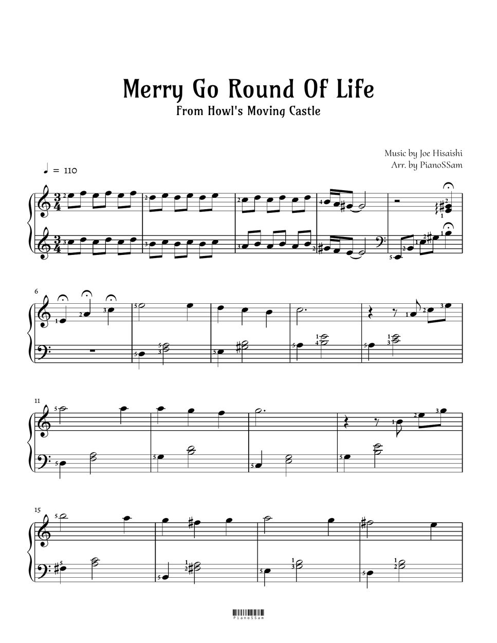 [Intermediate] Merry go round of life-人生のメリーゴーランド (인생의 회전목마) | Piano Arrangement (하울의 움직이는 성) Joe Hisaishi