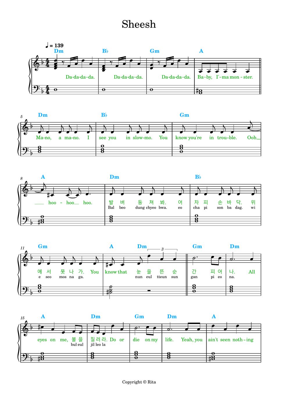 Sheesh (Easy version with Korean lyrics and romanized pronunciation, chords) Babymonster