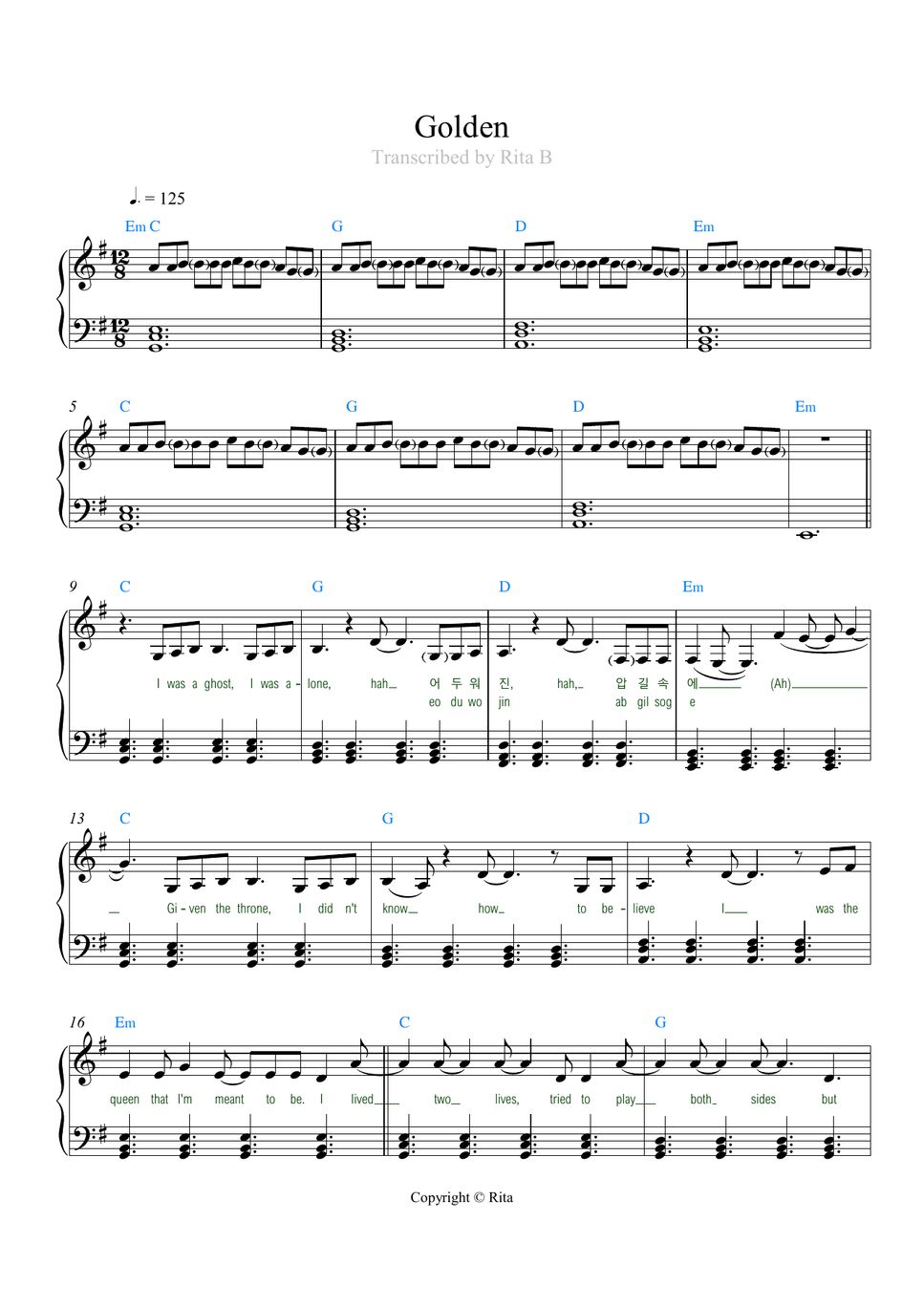 Hi, I am Rita. I transcribe piano scores for popular music. My sheet music are accurate but playable transcriptions with lyrics and harmonic chords.