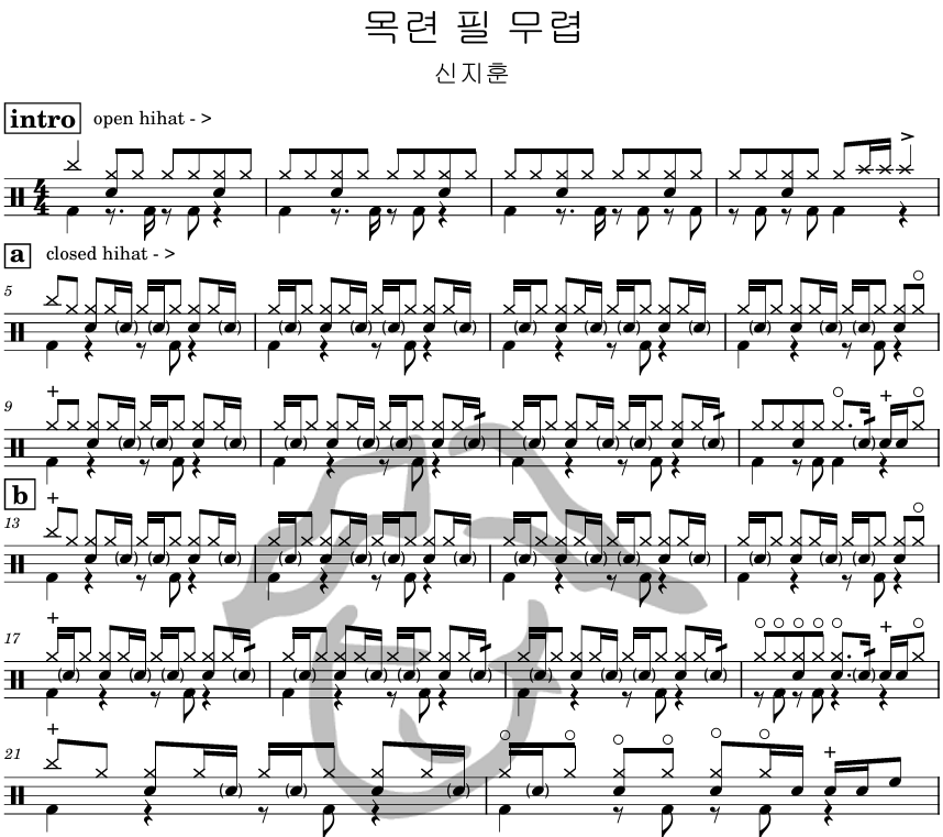 [은규네스튜디오] 드럼악보 신지훈 - 목련 필 무렵