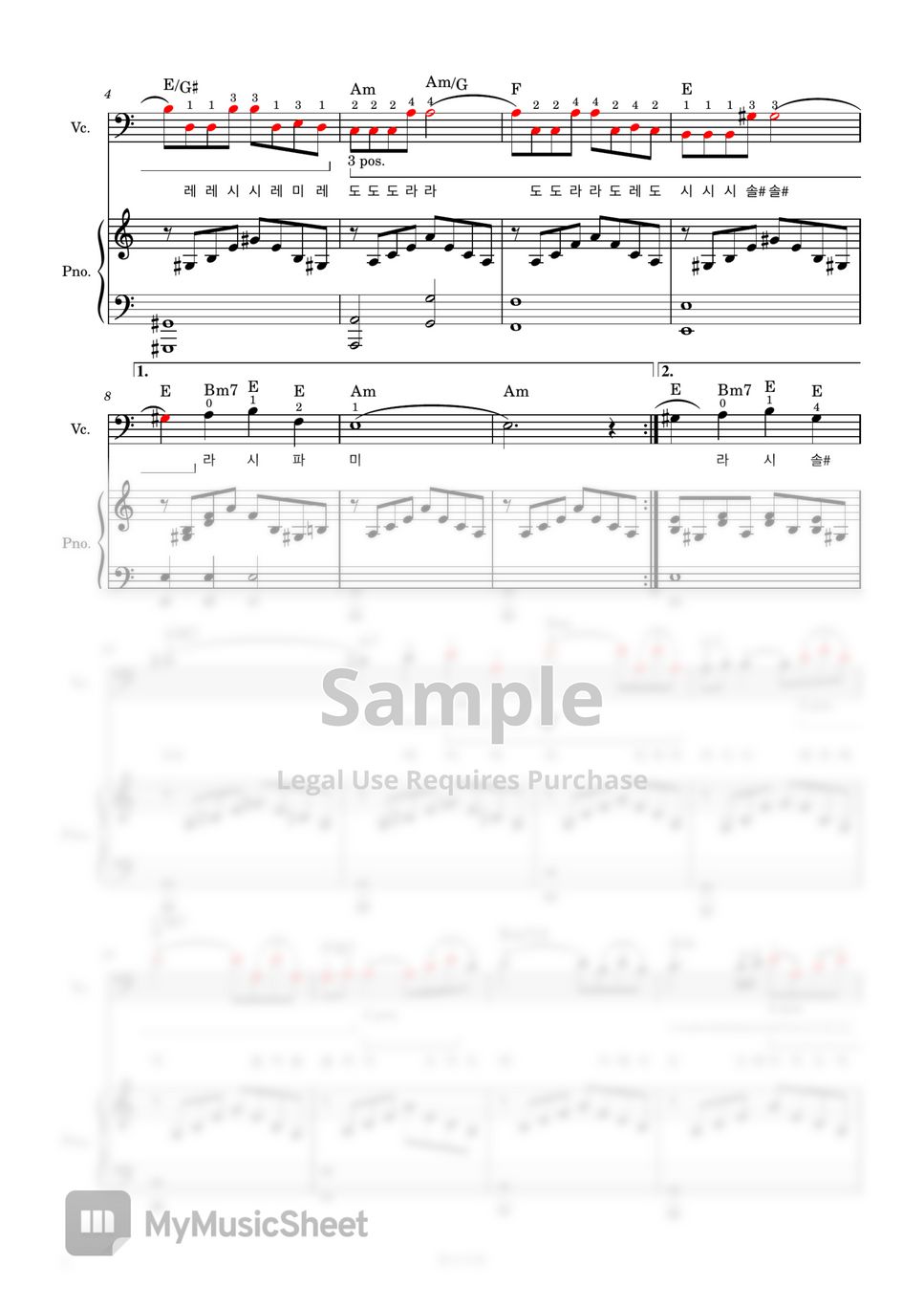 Love Story (첼로+피아노, 계이름 & 손가락 번호 포함)