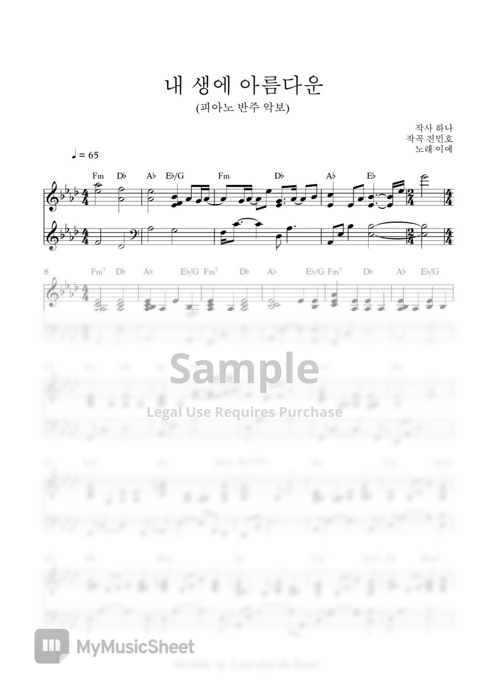 내 생에 아름다운(Beautiful Moment) (MR SHEET)