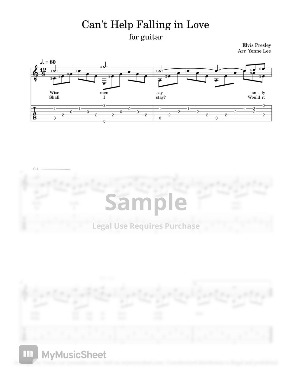 Can't Help Falling in Love (Tab+Staff) Elvis Presley